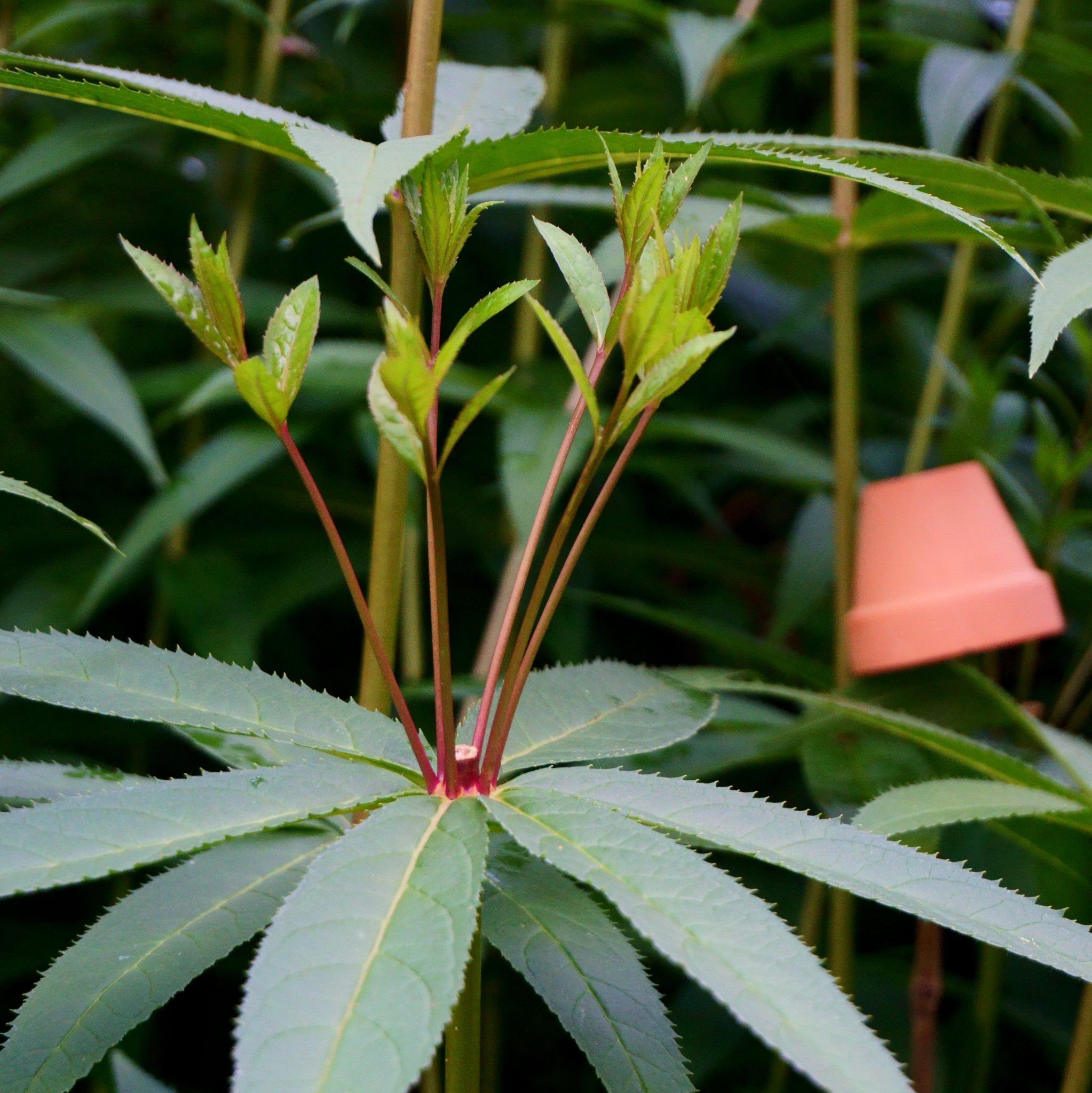 A visszavágott virágszáron lévő virágok még csak bimbósak, ellenben a magas virágszáron már nyílnak a virágok.